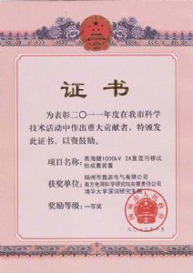 一種新型試驗電源設(shè)備上用倍壓塔-發(fā)明專利證書